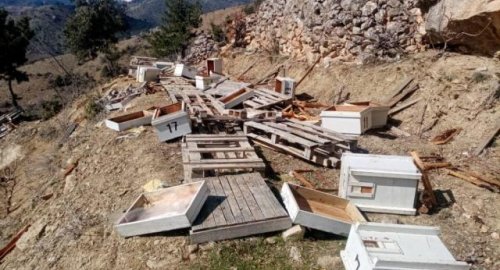 500 Evler mevkisinde 10 yıldır arıcılık yapan Fevzi Can, araziyi kontrol etmeye gittiğinde, kovanlarının tamamının ve bahçesinin talan edildiğini gördü.