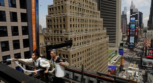 Ünlü Times Meydanı’nda gökdelenlerden birinin çatısında bulunan binlerce arı, yetkileri alarma geçirdi.