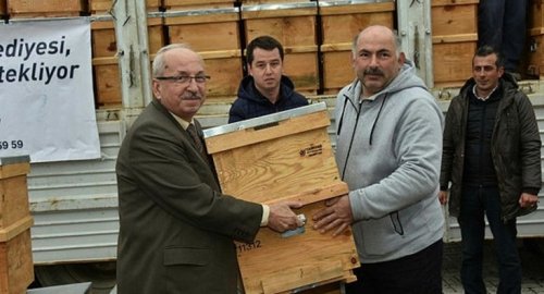 ardından bal üreticilerine kovanları dağıtıldı. |