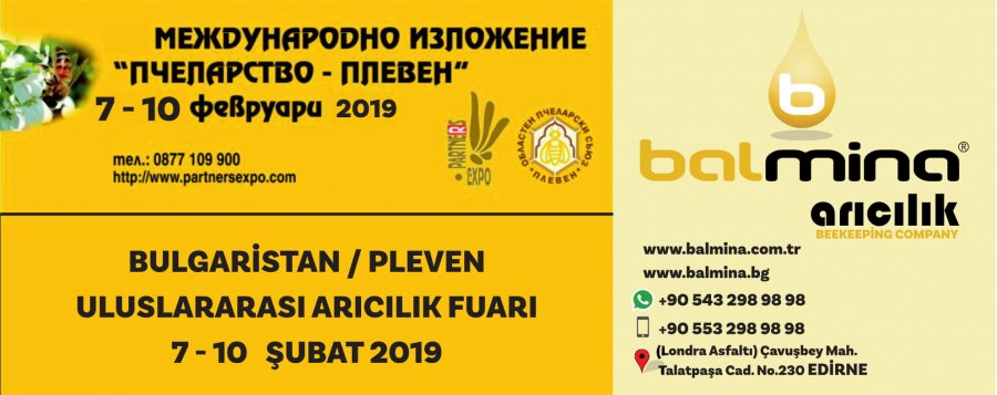 Kongre ve Fuarlar Arıcılık KongreleriArıcılık FuarlarıTarım FuarlarıArıcılık FestivaliArıcılık ÇalıştayıDünya Arı GünüArıcılık KonferansıArıcılık SemineriArıcılık Eğitimi 7-10 Şubat 2019 Bulgaristan / Pleven Uluslararası Arıcılık Fuarı 7 Şubat 2019