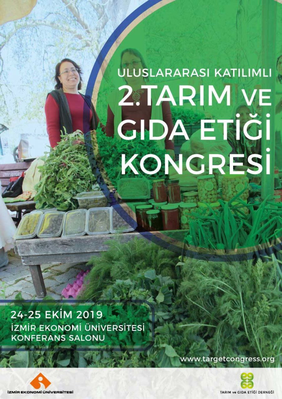 Tarım ve Gıda Etiği Derneği ve İzmir Ekonomi Üniversitesi tarafından düzenlenen 2. Uluslararası Tarım ve Gıda Etiği Kongresi, İzmir Ekonomi Üniversitesi ev sahipliğinde 24-25 Ekim 2019 tarihlerinde İzmir’de gerçekleştirilecektir. Kongre’de, tarım ve gıda etiği ile ilgilenen farklı disiplinleri; akademik dünya ile gerçek üreticileri, tarım ve gıda sisteminin tüm paydaşlarını ve bileşenlerini; ülkemizde yaşananlar ile dünya deneyimlerini buluşturmayı umuyoruz.