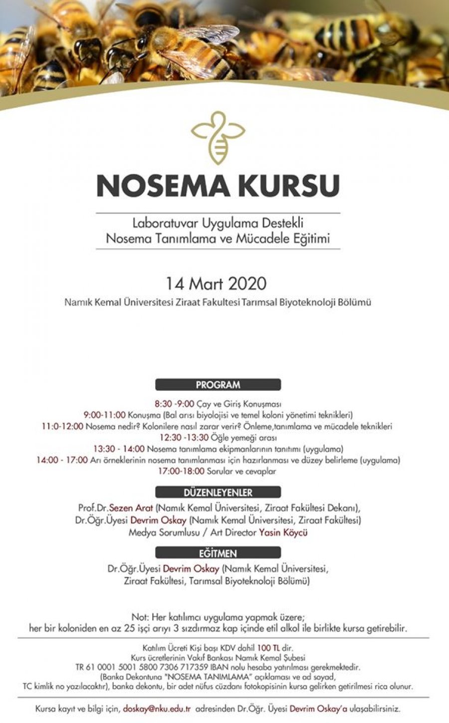 Kongre ve Fuarlar Arıcılık KongreleriArıcılık FuarlarıTarım FuarlarıArıcılık FestivaliArıcılık ÇalıştayıDünya Arı GünüArıcılık KonferansıArıcılık SemineriArıcılık Eğitimi 14 Mart 2020 Tekirdağ Nosema Kursu 14 Mart 2020